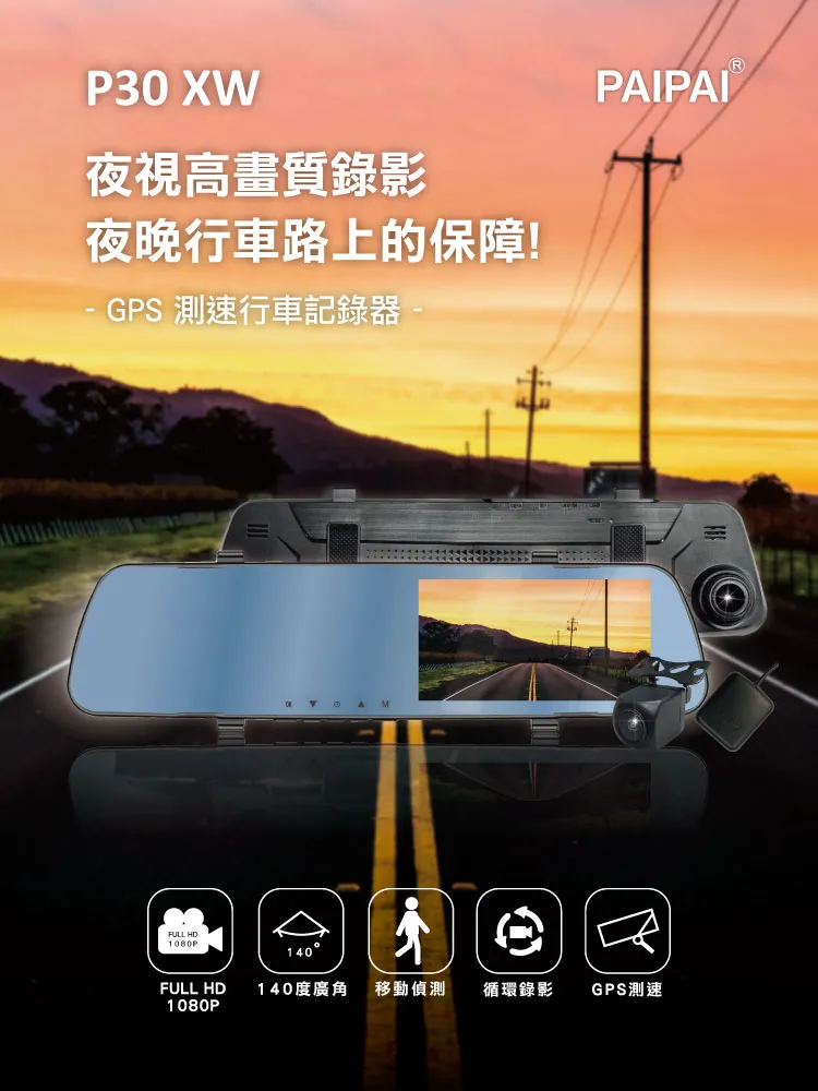 P30 XW夜視高畫質錄影夜晚行車路上的保障! GPS測速行車記錄器PIPAIFULL HD1080P140AFULL HD1080P140度廣角 移動偵測循環錄影GPS測速