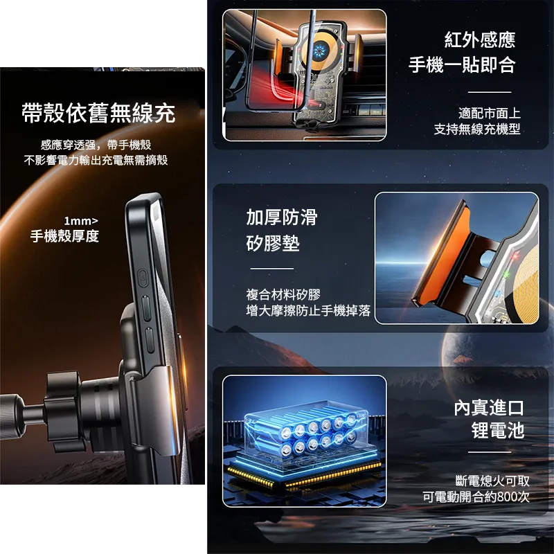 帶殼依舊無線充感應穿透强,帶手機殼不影響電力輸出充電無需摘殼紅外感應手機一貼即合適配市面上支持無線充機型1mm手機殼厚度加厚防滑矽膠墊複合材料矽膠增大摩擦防止手機掉落進口電池斷電熄火可取可電動開合約800次