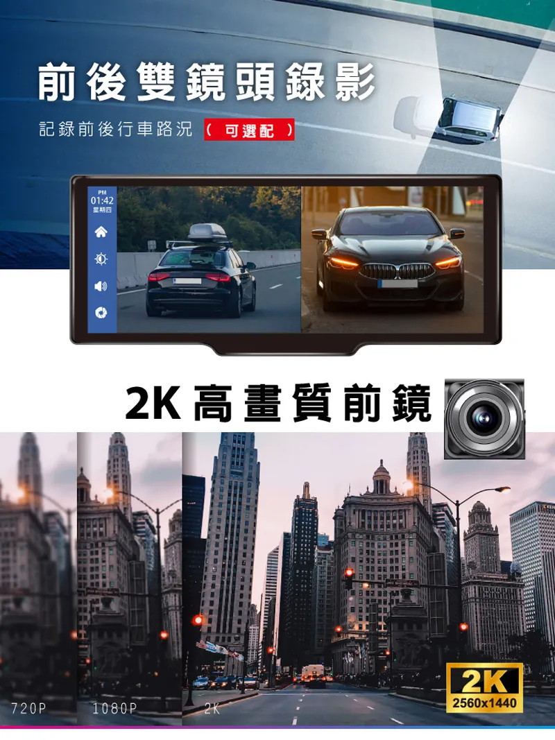 前後雙鏡頭錄影記錄前後行車路況(可選配)PM0142星期四: 高畫質前鏡720P1080P2K2560x1440