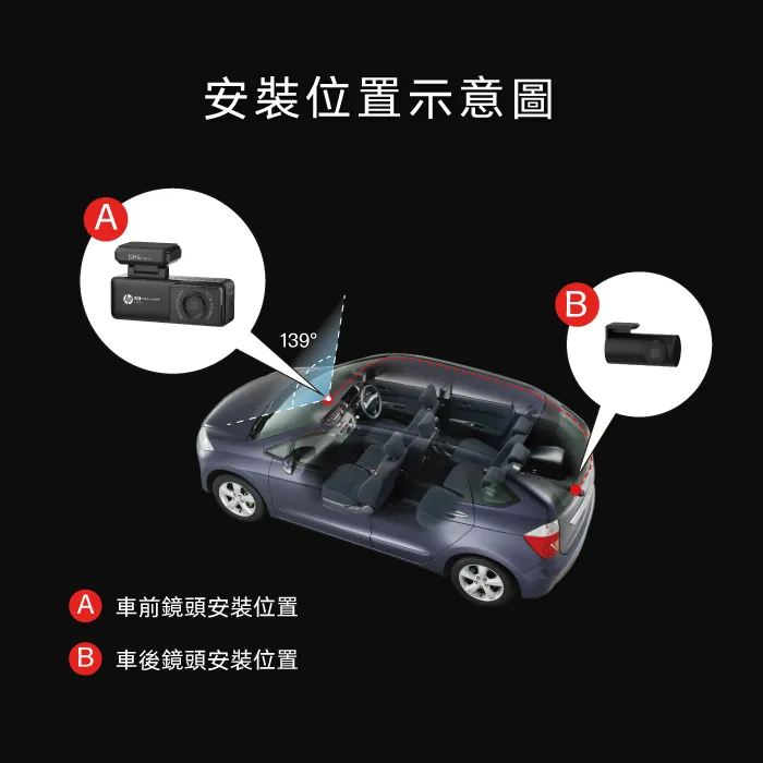 Α安裝位置示意圖139A 車前鏡頭安裝位置B 車後鏡頭安裝位置