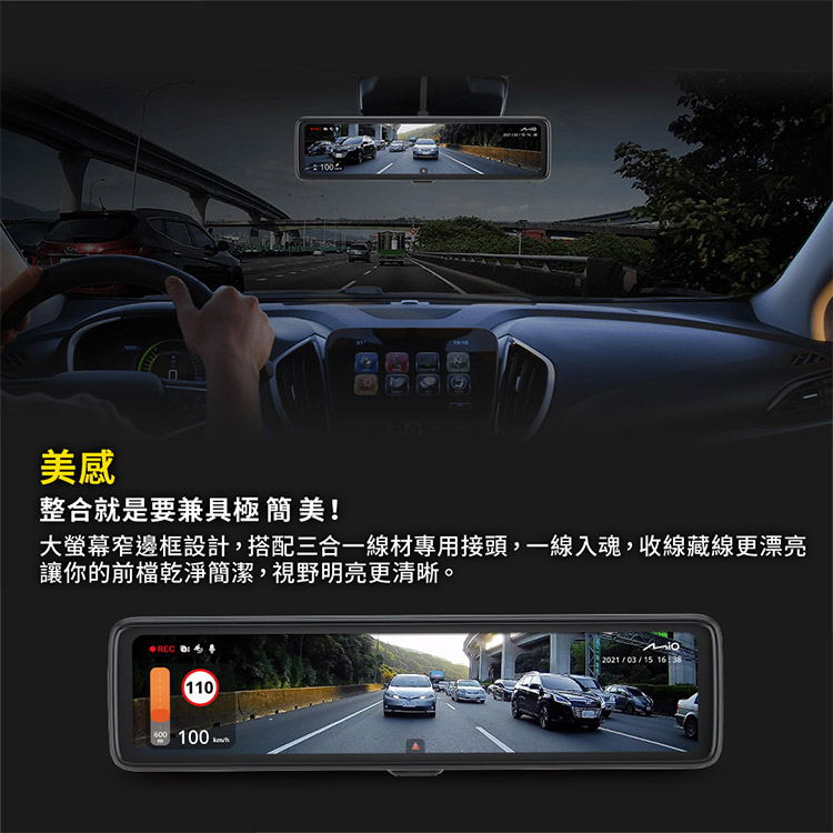 100美感整合就是要兼具極簡美大螢幕窄邊框設計,搭配三合一線材專用接頭,一線入魂,收線藏線更漂亮讓你的前檔乾淨簡潔,視野明亮更清晰。REC110 2021/03/15