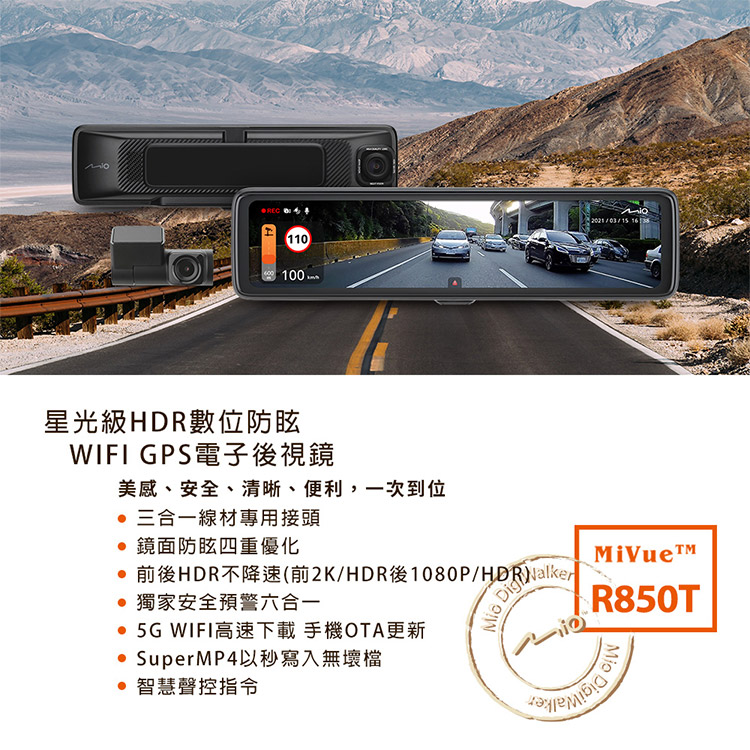 為自己升級,一次到位MiVue R850T星光級HDR數位防眩 WIFI GPS電子後視鏡多功能整合,是電子後視鏡更是你的行車助理。