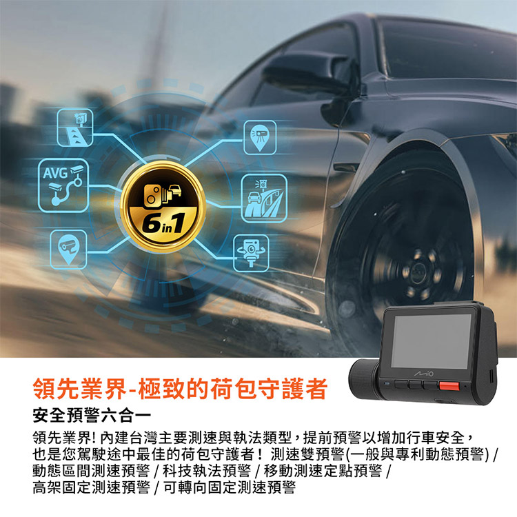 AAVG領先業界-極致的荷包守護者安全預警六合一領先業界!內建台灣主要測速與執法類型,提前預警以增加行車安全,也是您駕駛途中最佳的荷包守護者!測速雙預警(一般與專利動態預警動態區間測速預警科技執法預警/移動測速定點預警 /高架固定測速預警/可轉向固定測速預警