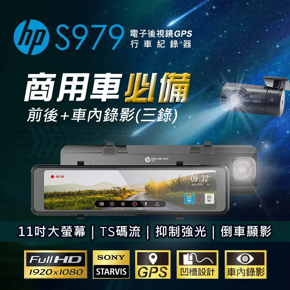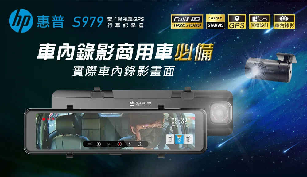 惠普 S979電子後視鏡 GPSull HDSNY 行車紀錄器1920x1080STARVIS GPS 凹槽設計 錄影車內錄影商用車實際車內錄影畫面O FULL HD 09:32 F
