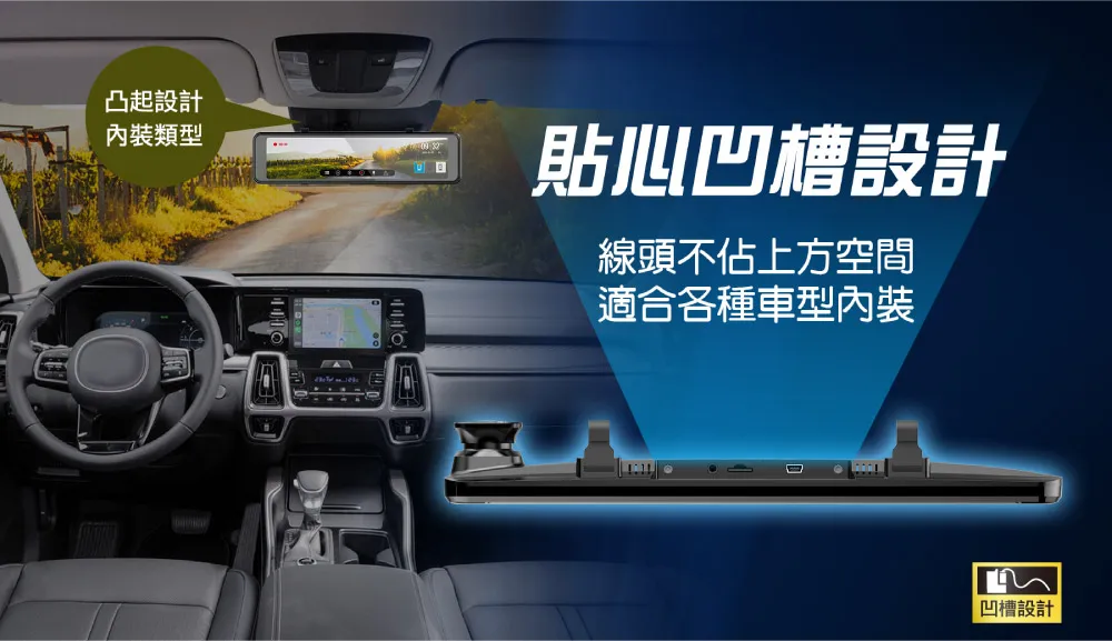 凸起設計內裝類型貼心凹槽設計線頭不佔上方空間適合各種車型內裝凹槽設計