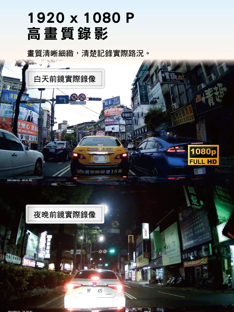 1920 x 1080P高畫質錄影畫質清晰細緻,清楚記錄實際路況。白天前鏡實際錄像見傾心 66你發送15萬2021/05/15 夜晚前鏡實際錄像 65情趣 1080pFULL HD 保證
