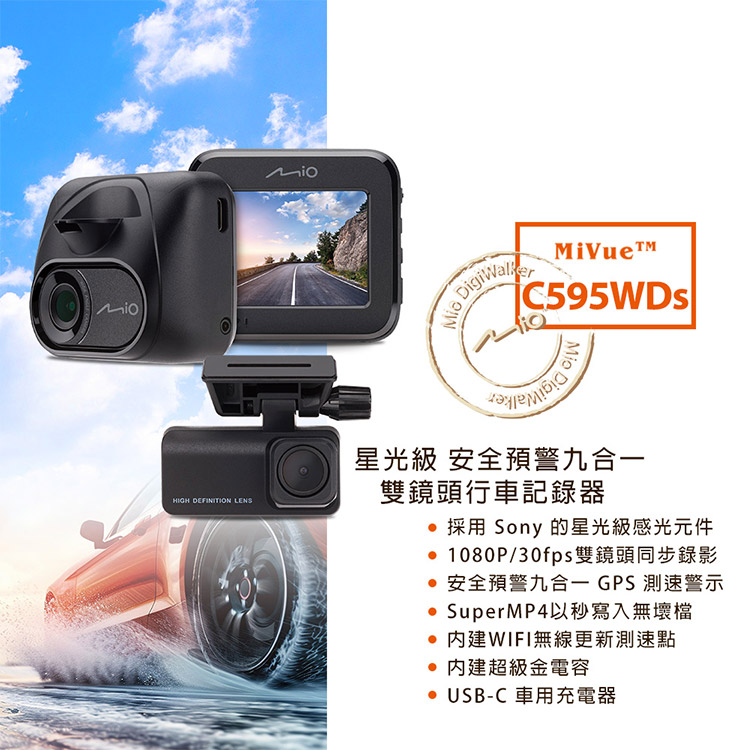 【Mio】MiVue C595WDs星光級 安全預警九合一 雙鏡頭行車記錄器