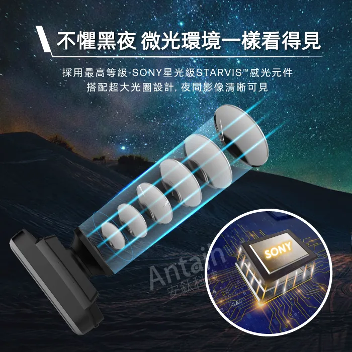 不懼黑夜 微光環境一樣看得見採用最高等級-SONY星光級STARVIS™感光元件搭配超大光圈設計,夜間影像清晰可見安鈦SONY