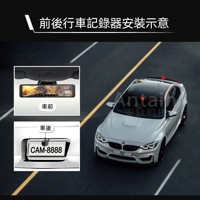 前後行車記錄器安裝示意車前車後CAM-8888安鈦科技