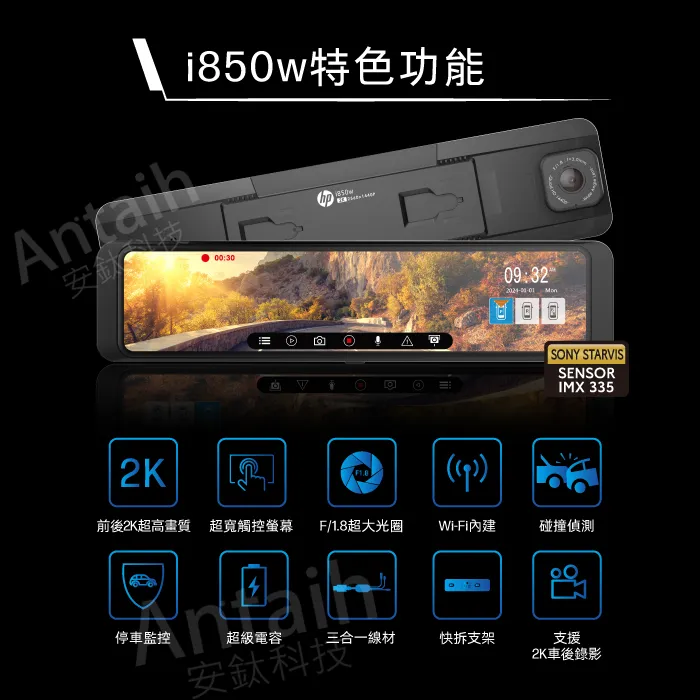 安科技iw特色功能8502K) MonSONY STARVISSENSORIMX 335前後2K超高畫質 超寬觸控螢幕F/1.8超大光圈Wi-Fi內建碰撞偵測4停車監控超級電容安鈦科技三合一線材快拆支架支援2K車後錄影
