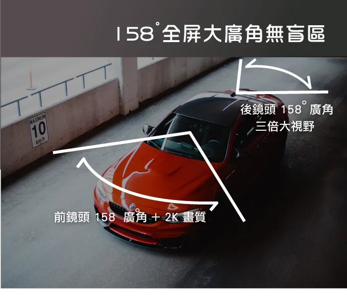 MAXIMUM1158 全屏大廣角無盲區前鏡頭 158 廣角 + 2K 畫質0後鏡頭 158°廣角三倍大視野