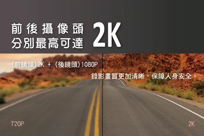 前後攝像頭分別最高可達(前鏡頭2K+ (後鏡頭)1080P2K720P錄影畫質更加清晰,保障人身安全2K