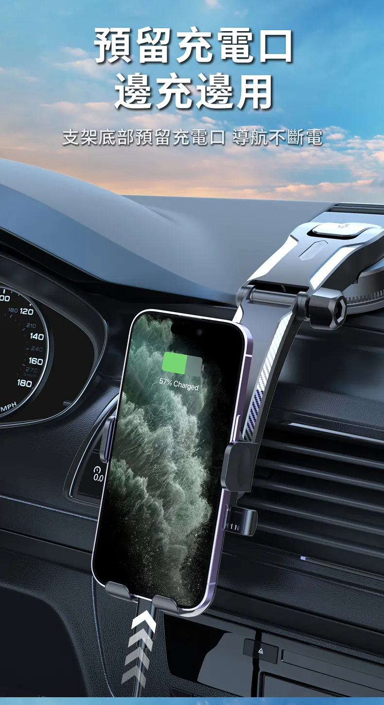 預留充電口邊充邊用支架底部預留充電口 導航不斷電180120PH210140-24016018057% Charged M0.0
