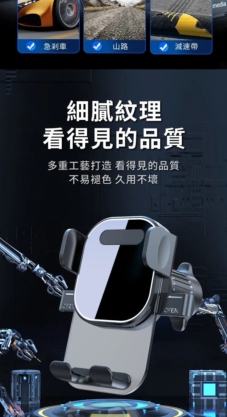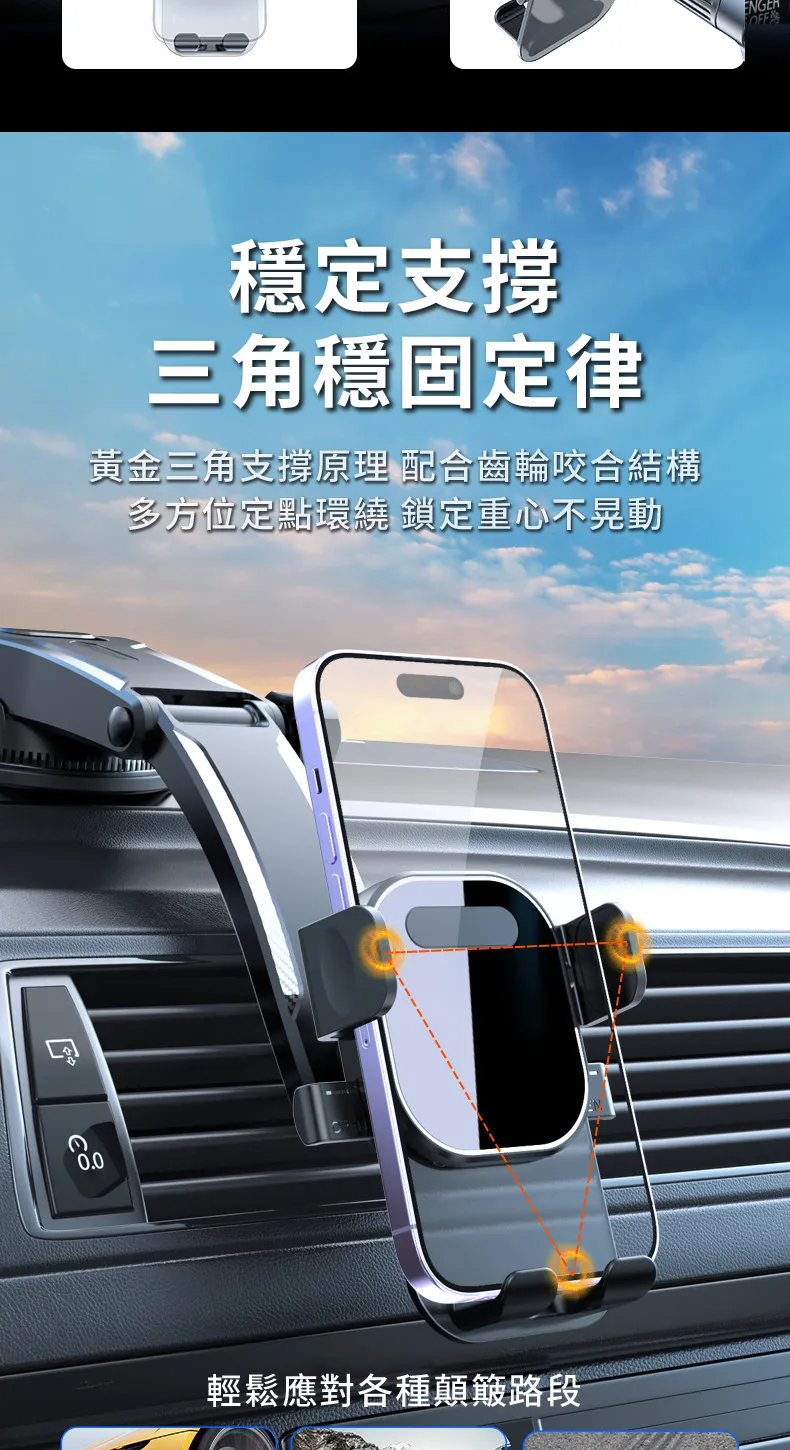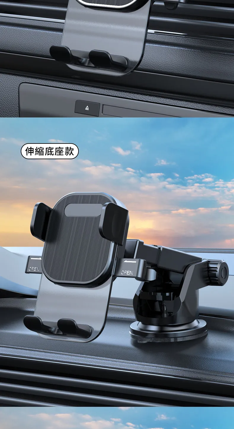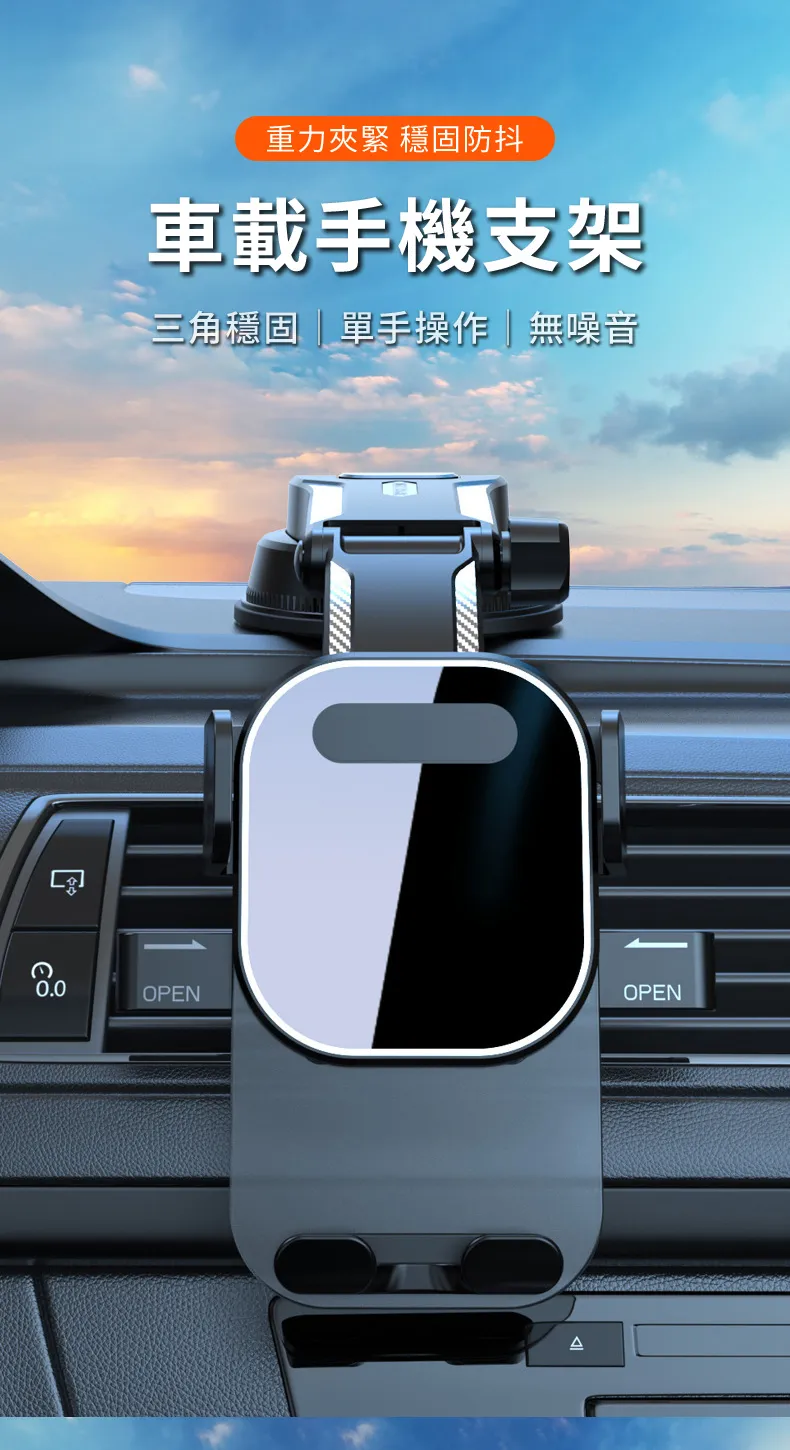 重力夾緊 穩固防抖車載手機支架三角穩固|單手操作無噪音0.0OPENOPEN