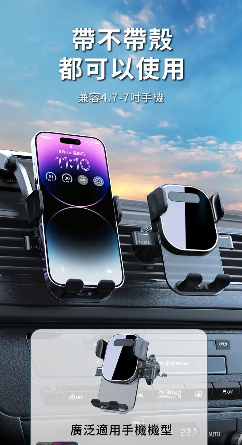 帶不帶殼都可以使用兼容4.7-7吋手機移动9月8日 星期四11:10308:10 OFFOPENmultimediaOPENPASSENGERAIRBAG OFFOFFAIRBAG廣泛適用手機機AUTO