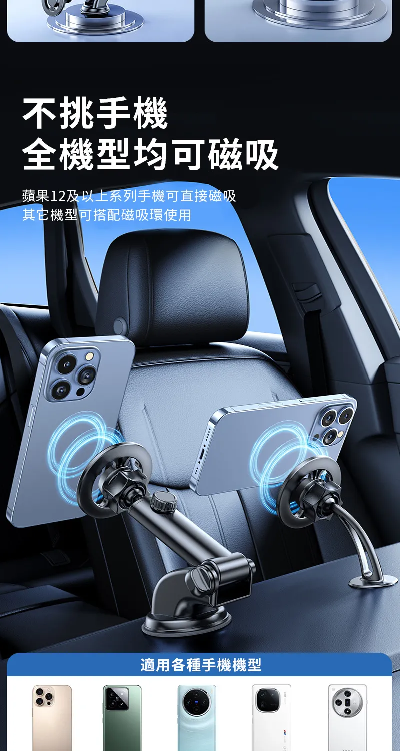 不挑手機全機型均可磁吸蘋果12及以上系列手機可直接磁吸其它機型可搭配磁吸環使用適用各種手機機型