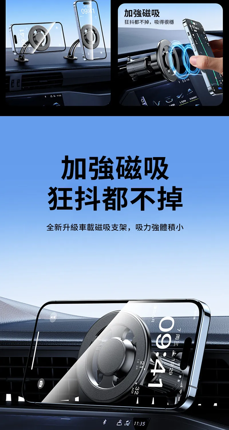 加強磁吸狂抖都不掉,吸得很穩加強磁吸狂抖都不掉全新升級車載磁吸支架,吸力強體積小11:35周09:41