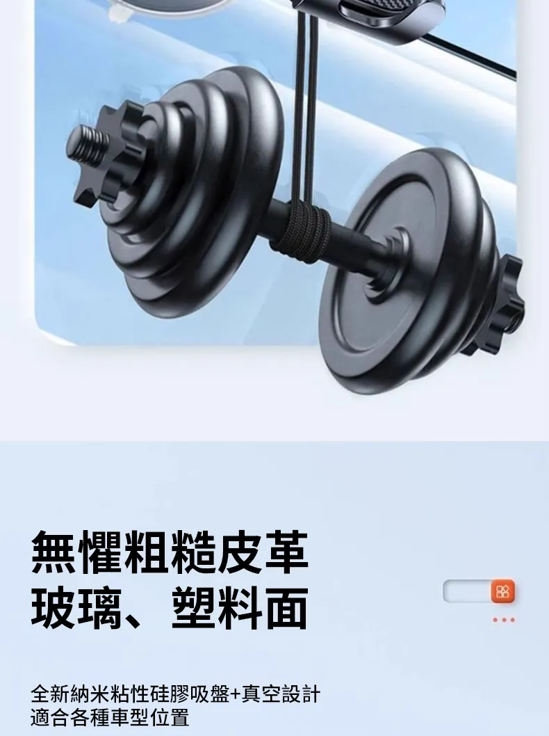 無懼粗糙皮革玻璃、塑料面全新納米粘性硅膠吸盤+真空設計適合各種車型位置