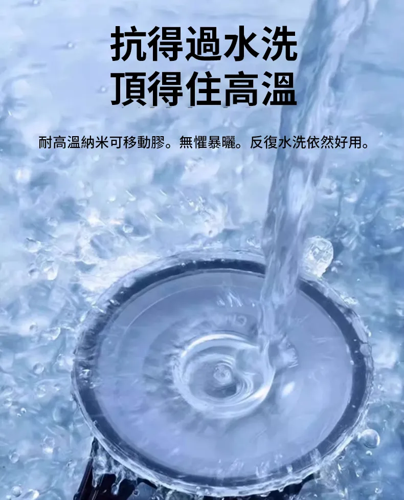 抗得過水洗頂得住高溫耐高溫納米可移動膠。無懼暴曬。反復水洗依然好用。