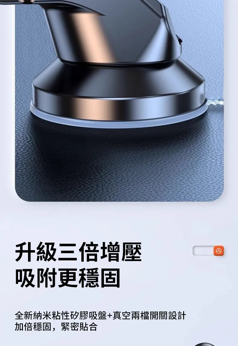 升級三倍增壓吸附更穩固全新納米粘性矽膠吸盤+真空兩檔開關設計加倍穩固,緊密貼合