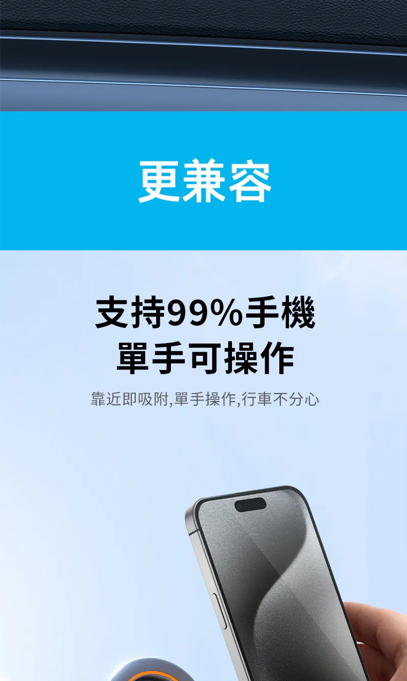 更兼容支持99%手機單手可操作靠近即吸附,單手操作,行車不分心