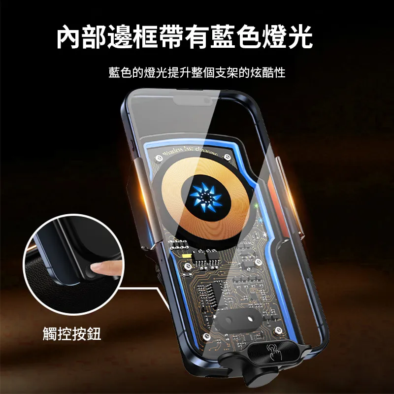內部邊框帶有藍色燈光藍色的燈光提升整個支架的炫酷性觸控按鈕