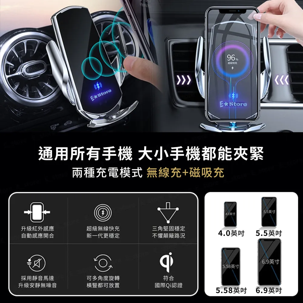 96%S通用所有手機 大小手機都能夾緊兩種充電模式 無線充+磁吸充tore 英寸升級紅外感應自動感應開合超級無線快充新一代更穩定三角堅固穩定不懼顛簸路況40英吋5.5英吋 store.q6.9英寸5.58英寸採用靜音馬達升級安靜無噪音可多角度旋轉符合橫豎都可放置國際Qi認證5.58英吋6.9英吋