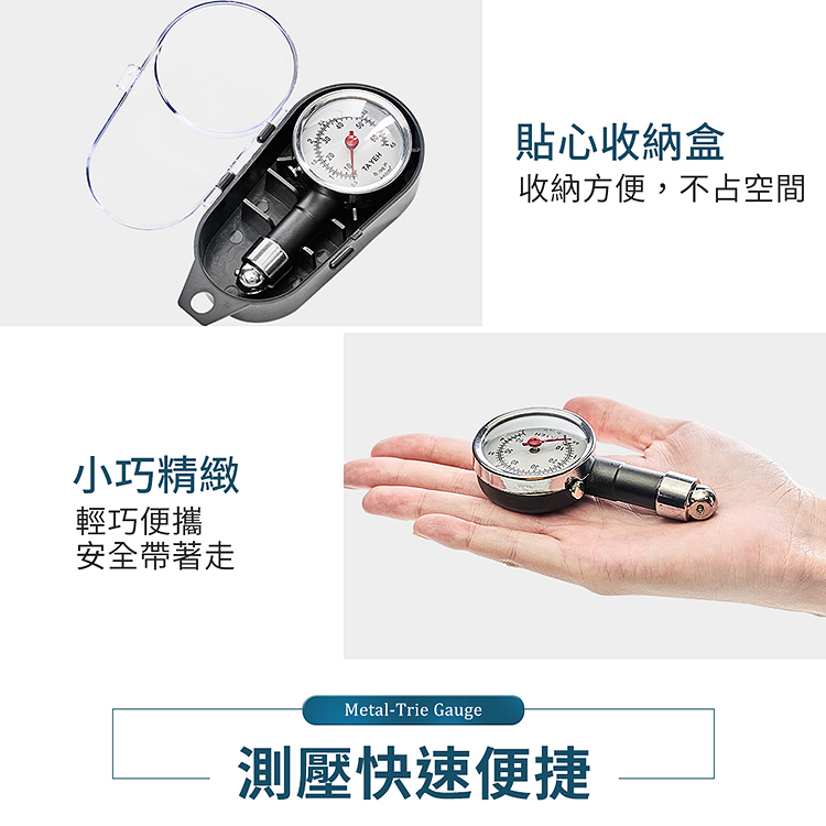 小巧精緻輕巧便攜安全帶著走貼心收納盒收納方便,不占空間Metal-Trie Gauge測壓快速便捷